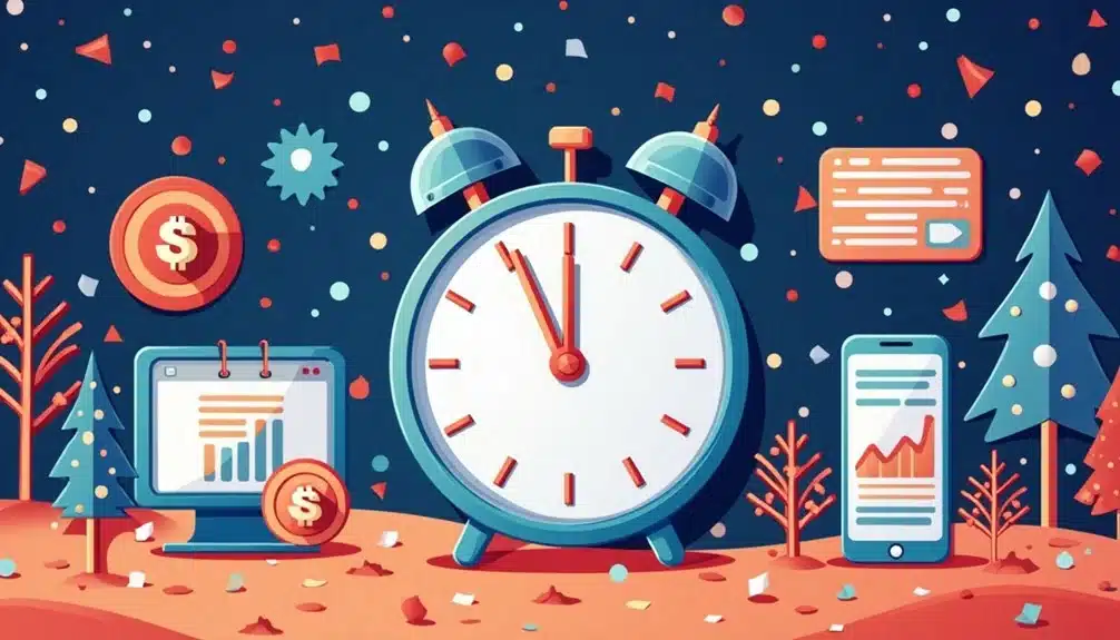 To leverage Google Ads for New Year promotions, you need to time your campaigns strategically, targeting peak shopping periods around New Year's Eve and early January. Craft compelling ad copy that speaks to customer desires and pain points, incorporating social proof and statistics to build credibility and urgency. Guarantee a seamless mobile experience with responsive design and test ads across devices. Allocate your budget wisely, focusing on high-performing campaigns and ad groups, and adjust your bidding strategy to maximize ROI. By executing these strategies, you'll be well on your way to driving results – and there's more to explore to take your campaigns to the next level.